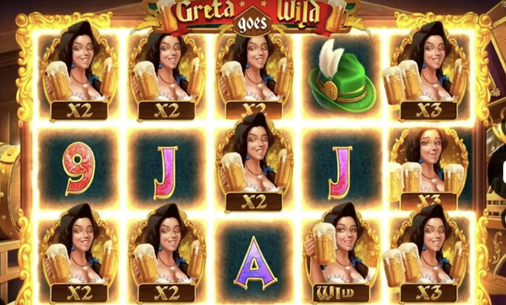 Greta Goes Wild предлагает большое количество различных символов и комбинаций, которые позволяют вам получить прибыль. Обычные символы представлены десятью стандартными картами от 9 до A. Также есть два специальных символа — значок Wild (героиня Грета) и значок Scatter (звери). Wild может заменить любой другой символ, кроме Scatter. А Scatter может активировать бонусную игру с джекпотом.